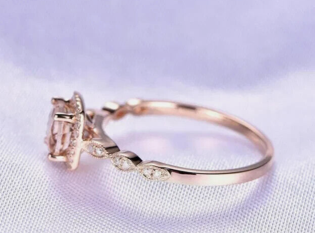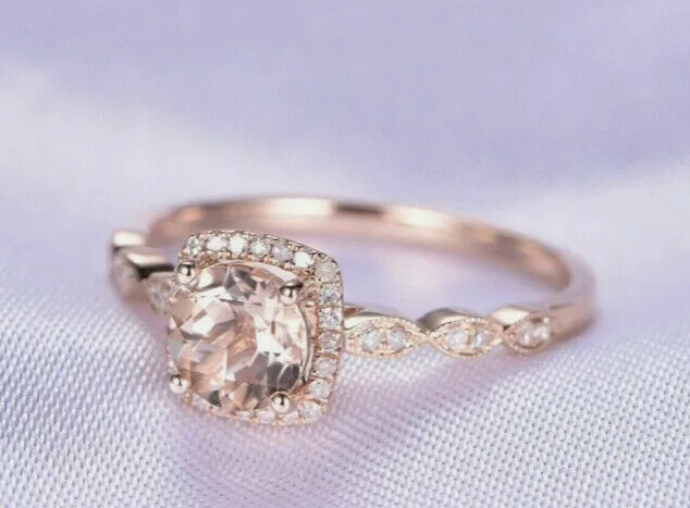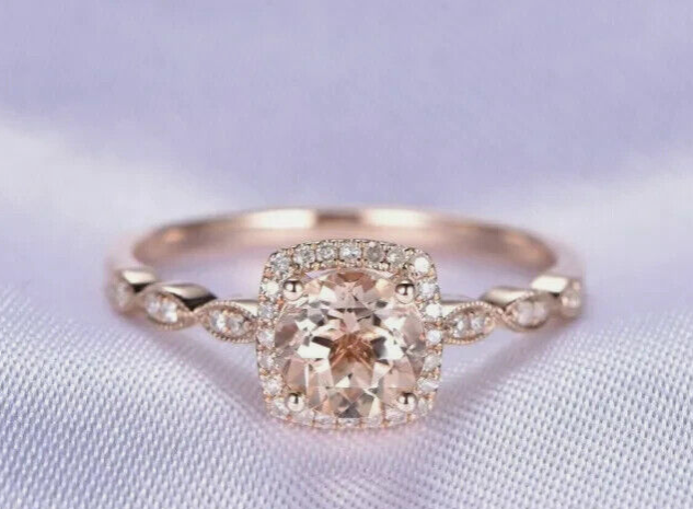 2.20Ct Round Cut Simulated Morganite Halo Engagement Ring 14K Rose Gold Plated