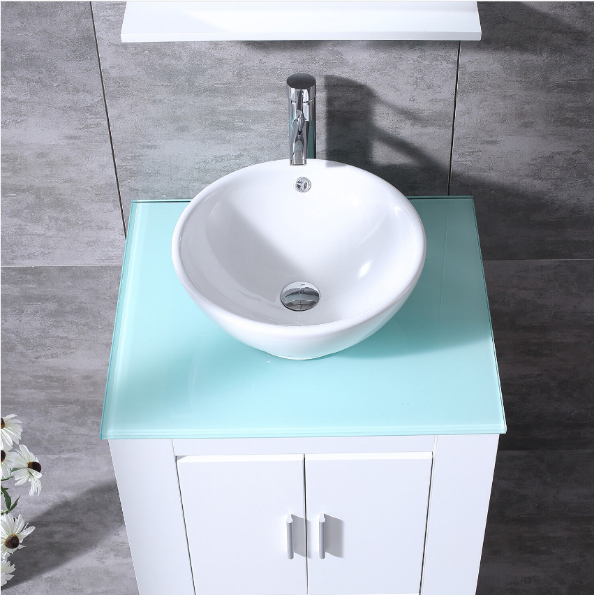 24" Modern Bathroom Vanity Plywood Cabinet Ceramic Vessel Sink Faucet Drain Set