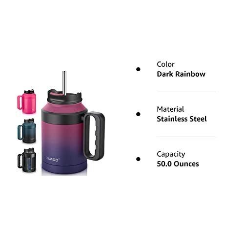 50 Oz Insulated Tumbler Mug with Lid and Straw Vacuum Travel Coffee Mug with Ha