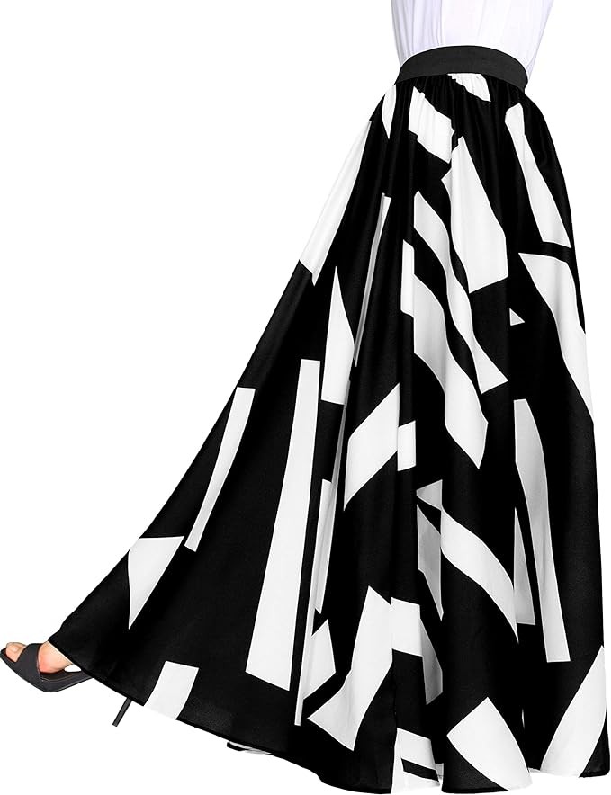 Afibi Women Chiffon Mopping Floor Length Big Hem Solid Beach High Waist Maxi Skirt