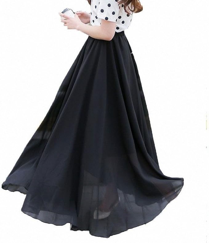 Afibi Womens Chiffon Retro Long Maxi Skirt Beach Ankle Length Skirt
