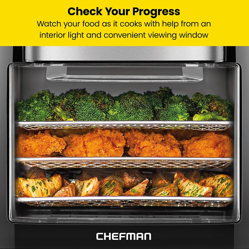 Monitor cooking progress: The interior lights and extra-large air fryer oven window allow you to check your food's cooking progress.