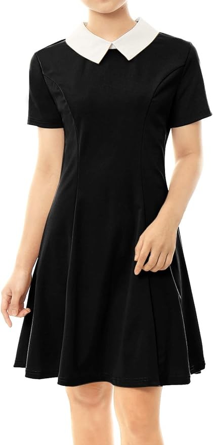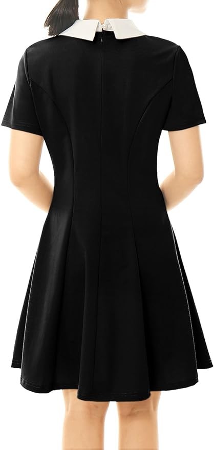 Allegra K Women's Short Sleeve Peter Pan Collar Cute Dress Casual Flare Skater Mini Dress Maid Costume