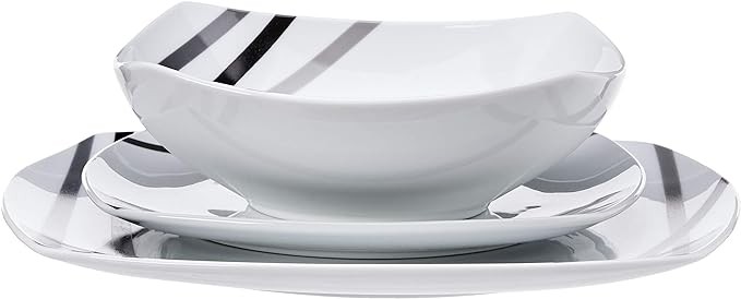 • 18-piece dinnerware set of matching plates and bowls; service for 6