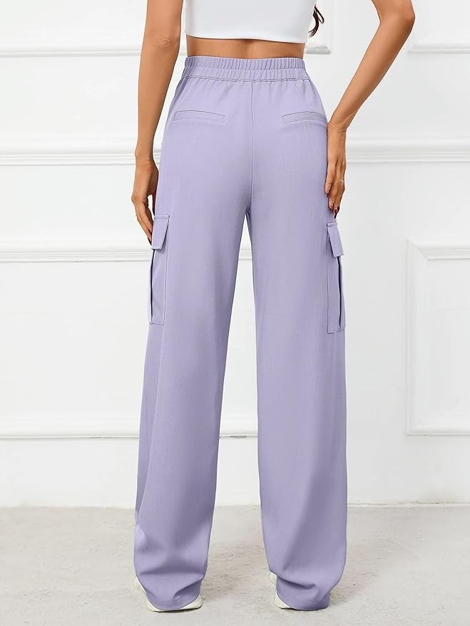 Feature: These women cargo pants has 4 pockets, stretch elastic high waist, relaxed fit, zipper and button closure, joggers sweatpants, wide leg cargo pants, and the loose fit is ideal for casual or sporty.