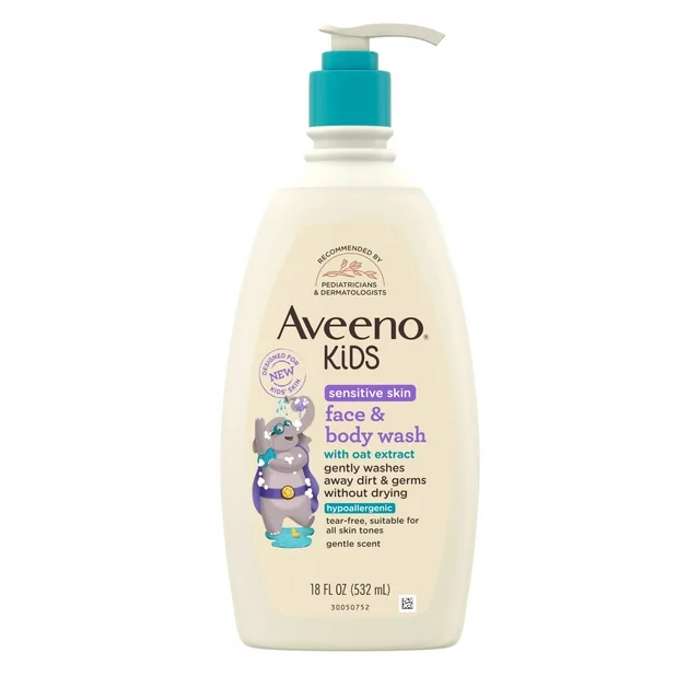 Aveeno Kids Sensitive Skin Face & Body Wash, with oat extract, to gently cleanse developing skin