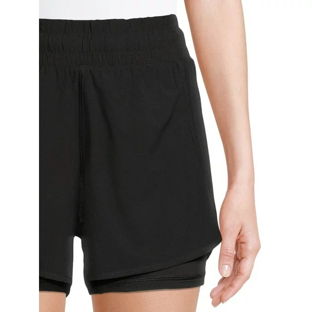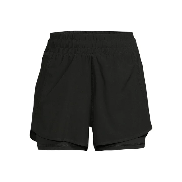 Features: Woven outer shorts; built-in undershorts; flattering side panels; lightweight