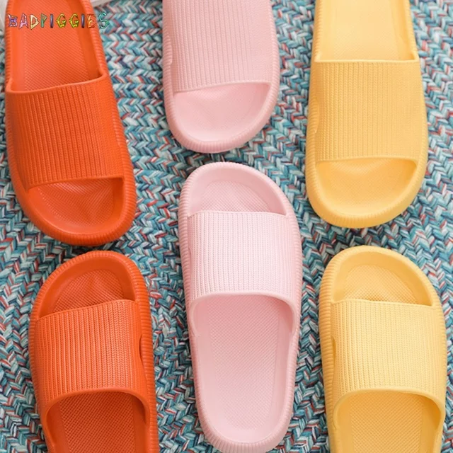 BadPiggies Anti-Slip Shower Shoes Pillow Slippers Sandals for Women Men Comfy Cushioned Thick Sole House Slides