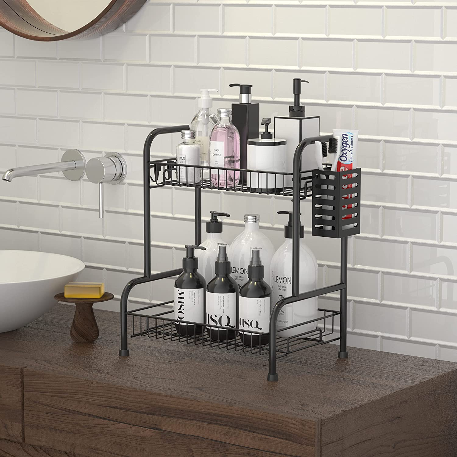 Bathroom Counter Organizer Rack with Toiletries Basket,Two Tier Stainless Steel
