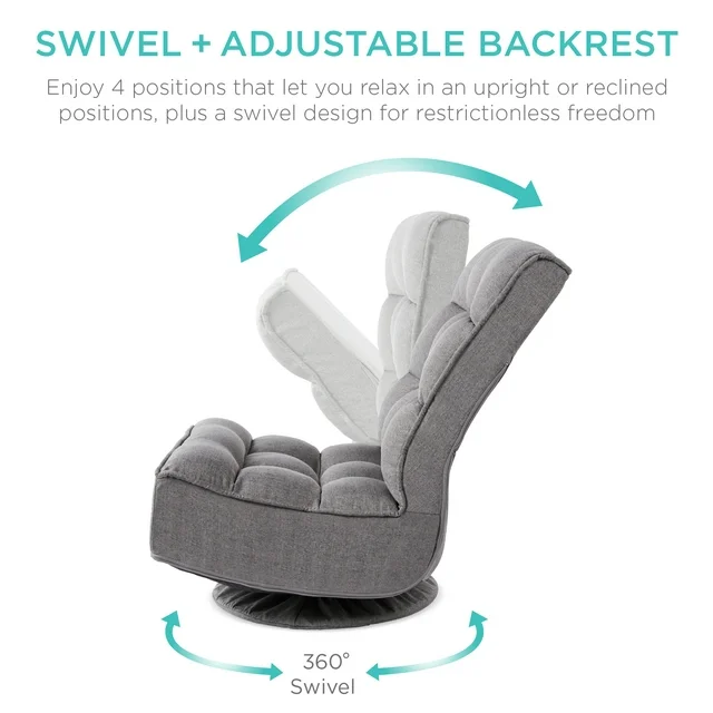 Best Choice Products Folding Floor Gaming Chair for Home, Office w/ 360-Degree Swivel, 4 Positions - Dark Gray