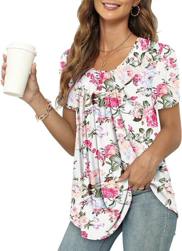 BETTE BOUTIK Women's Summer Tunic Tops Flowy Flare Botton Down Shirts Blouses S-3XL
