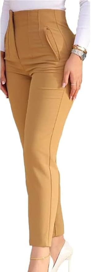 BIRW Womens Stretchy High Waisted Pants Trendy Skinny Business Work Casual Pencil Trousers with Pockets