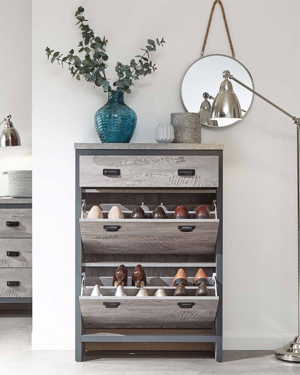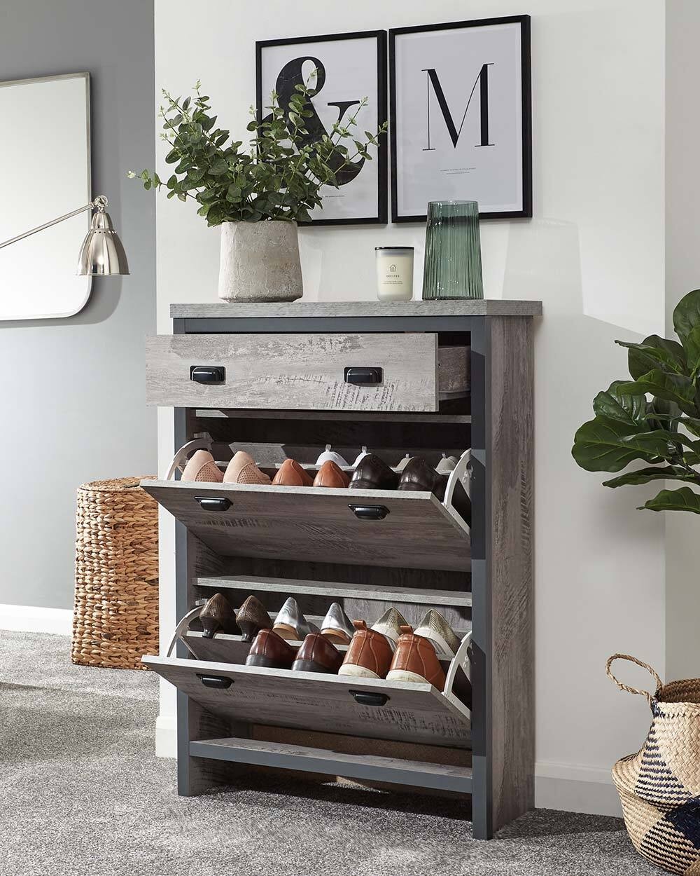Boston 2 Tier 1 Drawer Shoe Cabinet Grey Slim Shoe Storage Hallway Porch