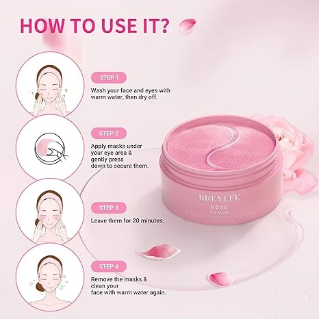 BREYLEE Rose Eye Mask– 60 Pcs, Under Eye Patches,Eye Patches For Puffy Eyes,Hydrates, Improves And Firms The Eye Area, Suitable For Both Women And Men.