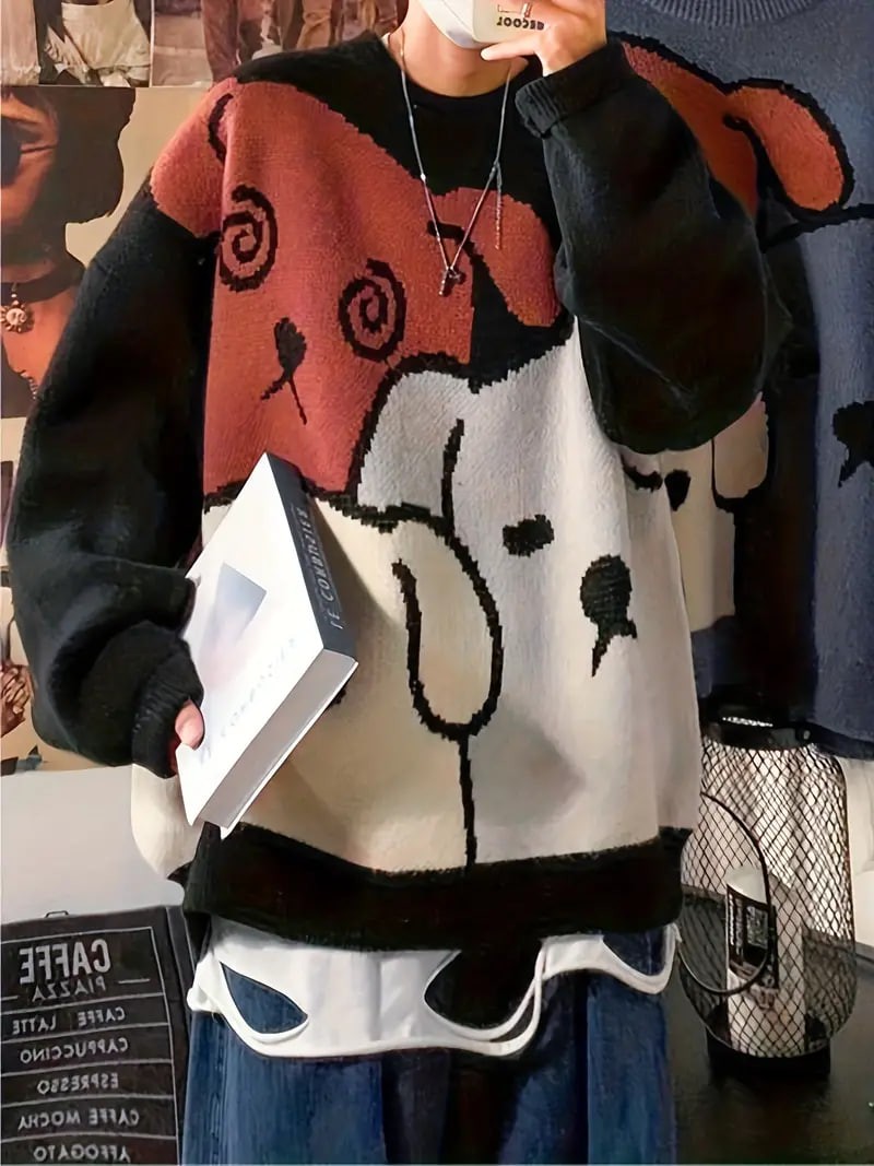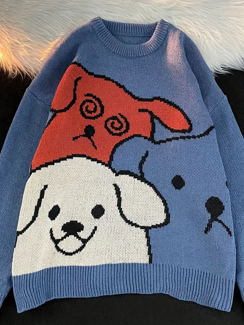 Cartoon Dog Casual Crew Neck Sports Sweater, Longs Sleeve Casual Pullover Sweater, Women s Tops details 1Cartoon Dog Casual Crew Neck Sports Sweater, Longs Sleeve Casual Pullover Sweater, Women s Tops details 1