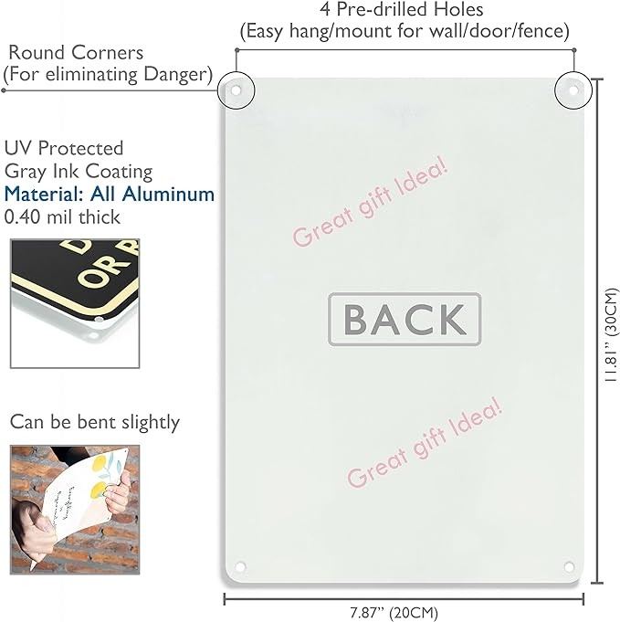 • SIZE & MATERIAL: Measures 8" x 12" and is constructed of durable Aluminum, can be bent slightly and not to deform, with four smooth round corners for eliminating the hazard.