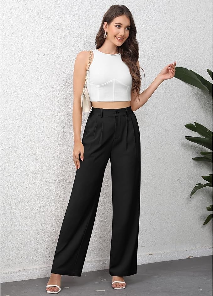 Design: This suit pants look very professional and comfortable to wear. The wide leg design makes you more fashion. The design of elastic waist is suitable for more body types. With two pockets are convenient for carring some small things such keys and phone etc.