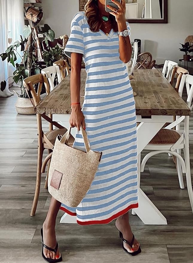 FABRIC: Soft and comfortable fabric makes the Short Sleeve summer dress for women maxi length flow with body wonderfully; This summer casual dress is made of premium material to give you the maximum comfort.