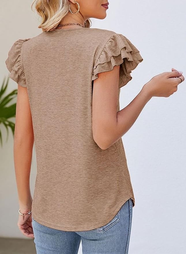 Features: Stylish Ruffle Sleeve, Sexy V-Neck, Solid Colour, Slim Fit, Women's Business Dresses Work Tops, Let you stand out and show off your bold sense of style.
