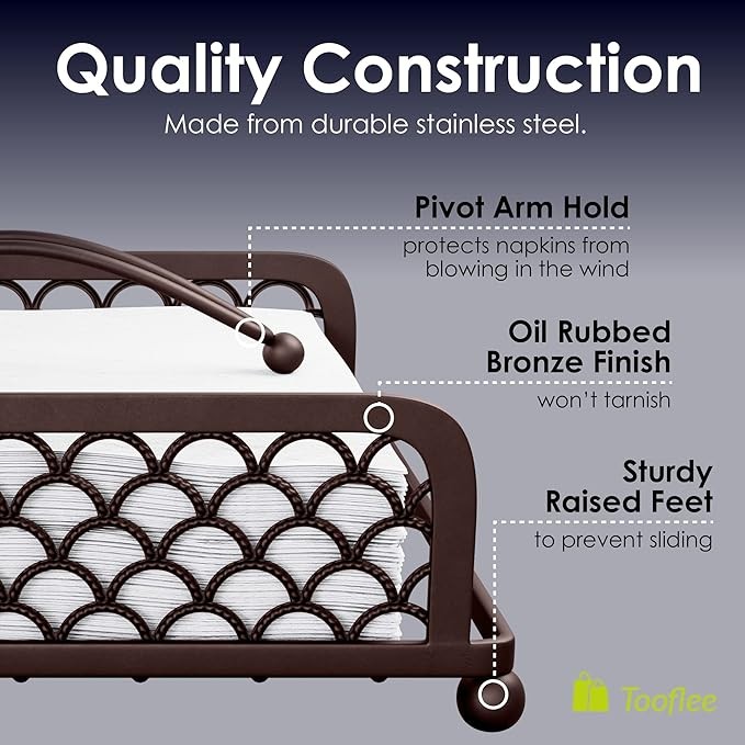 TARNISH RESISTANT - Enjoy the beautiful matte black finish on your new stainless steel napkin holder designed to stand the test of time. Our high quality construction ensures no loose, or poorly assembled design elements on this indoor or outdoor napkin holder.