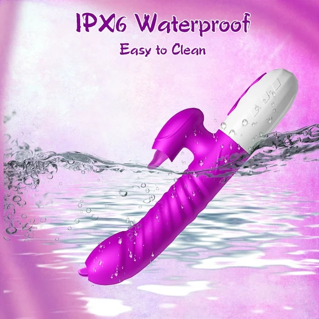 ESVOW Thrusting Rabbit Vibrator for Women, Stimulator Sex Toys with 10 Tongue Licking Vibration & 3 Telescopic Modes & Heating Function,5 IN 1 Waterproof Adult Toy for Couples Pleasure