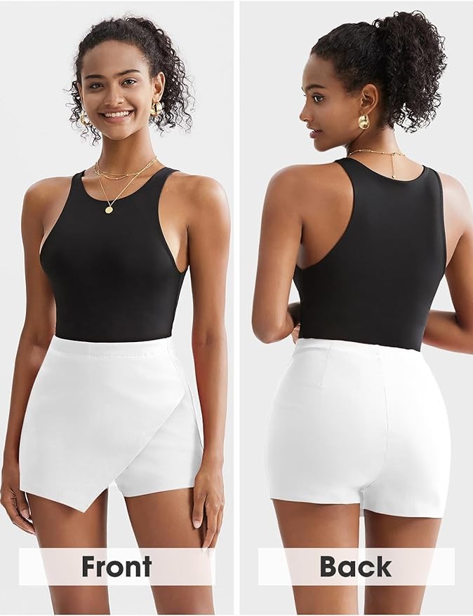 EXLURA Women's High Elastic Waist Bodycon Asymmetrical Skorts Short Mini Skirt with Shorts