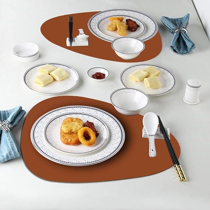 ?【EASY TO CLEAN AND CARE】The leather place mats is washable and easy to clean up, clean the place mat in time after dirty, wipe with a wet cloth or rinse with running water, wipe or air dry. No machine wash. Non-fading, it can roll up to store away, leather placemat can be flattened when put out to use.