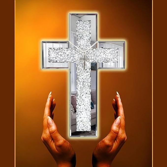 Premium Materials: Crafted with high-quality glass mirror and encrusted with diamonds, this cross decoration showcases exceptional craftsmanship and solid construction.