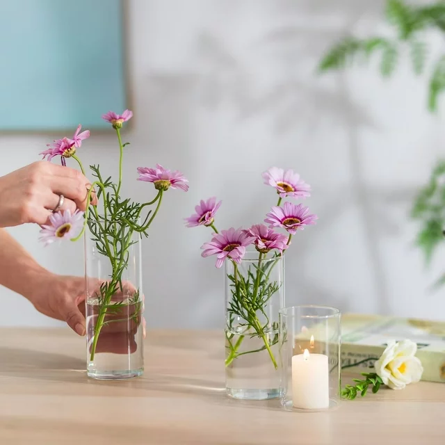 Cylinder vases are the simplest and most elegant glass vases for centerpieces. The classy and beautiful look makes glass cylinder vases the most effective and attractive glass flower vases, and they can be decorated for almost any occasion such as a party, wedding or other event decoration. You can never go wrong with a clear hurricane vase. Unlike normal round glass vase sets, Glasseam's bulk cylindrical vases are made from high-quality crystal clear glass that is 100 percent hand-blown. They are so versatile that they are not only popular to be used as hurricane vases for flowers, but also used as tall glass candle holders (pillar candles holder or floating candles holders), pot-pourri containers and table centerpieces (filled with gems, floating pearls, LED lights, rose petals or other vases filler). These tier-high clear floating candle vases are a fabulous addition to any event table centerpiece.