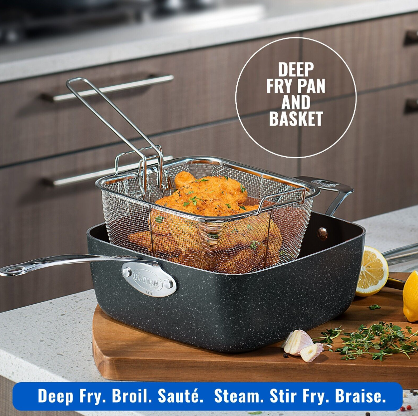 • ULTRA NON-STICK: Granite stone nonstick cooking surface is coated 3x, reinforced with diamonds to deliver the ultimate food release. No oil or butter needed, makes for healthier eating, and provides for hassle free, 1-2-3 cleanup