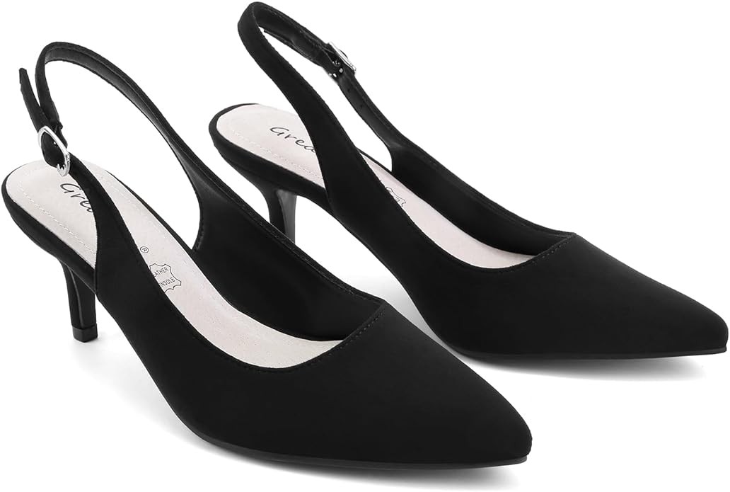 Greatonu Women's Slingback Kitten Heel Pointed Toe Dress Pumps Shoes