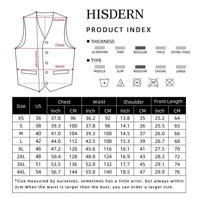 【Suit Vest for Men】Only 1* Waistcoat.8 size; 3 Real Pocket; 5 buttons; Waistcoat back can be adjusted.