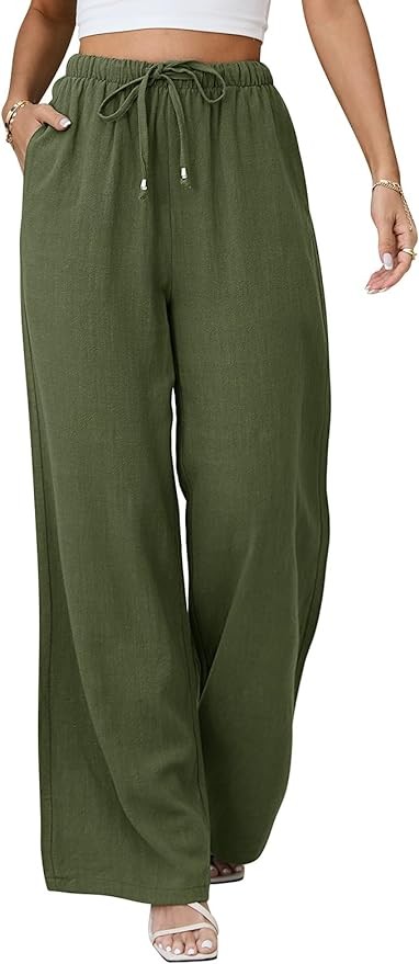 【Features】 Loose fit high waisted linen pants women have two side pockets, straight leg deisgn, flowy dressy pants, breathable material, comfortable sense, elastic flowy pants for women.