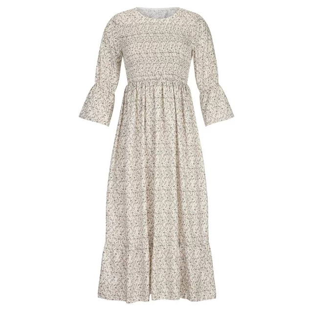 Kayannuo Short Sleeve Summer Dresses For Women 2023 Christmas Clearance Womens Dresses Fashion Women Chiffon Summer Casual Print V-Neck 3/4 Sleeve Long Dress White