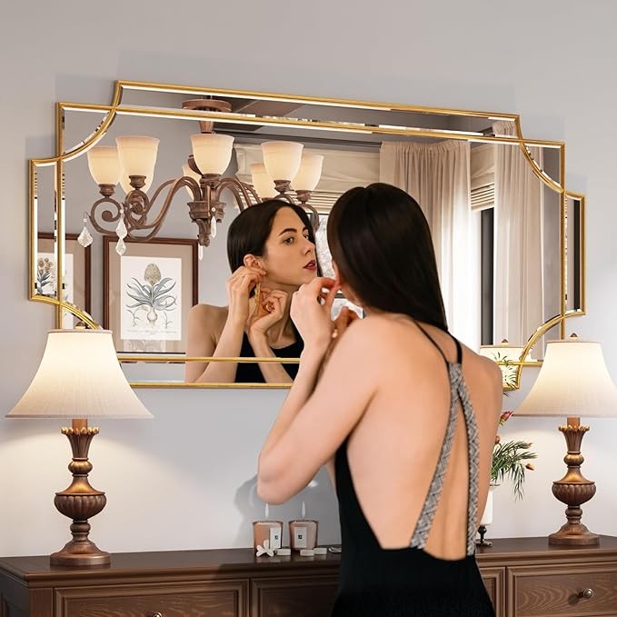 UNTIQUE DESIGN. If your want some intricacies/interest to the pattern - not just a simple round or rectangle, this mirror will definitely be your perfect choice. Its sophisticated cutout corner accents along the inner and outer edges of the frame complete the look with added decorative detail. It will be a beautiful addition to any wall and an essential element in your home decor.