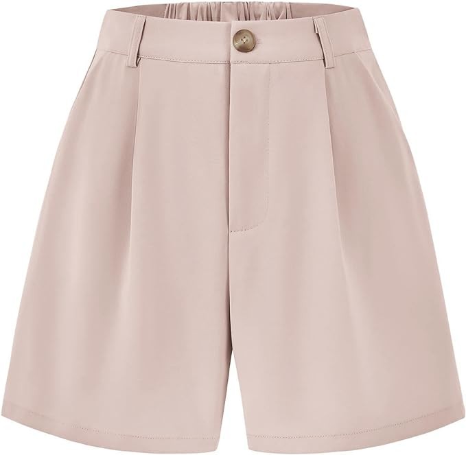 KIRUNDO Women's Shorts 2024 Trendy Summer Dressy Elastic High Waisted Pleated Business Casual Work Shorts with Pockets