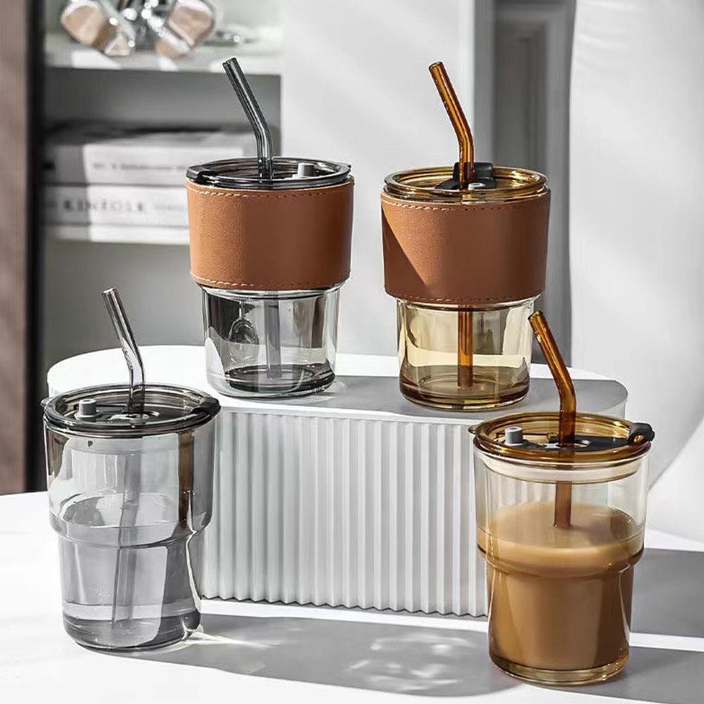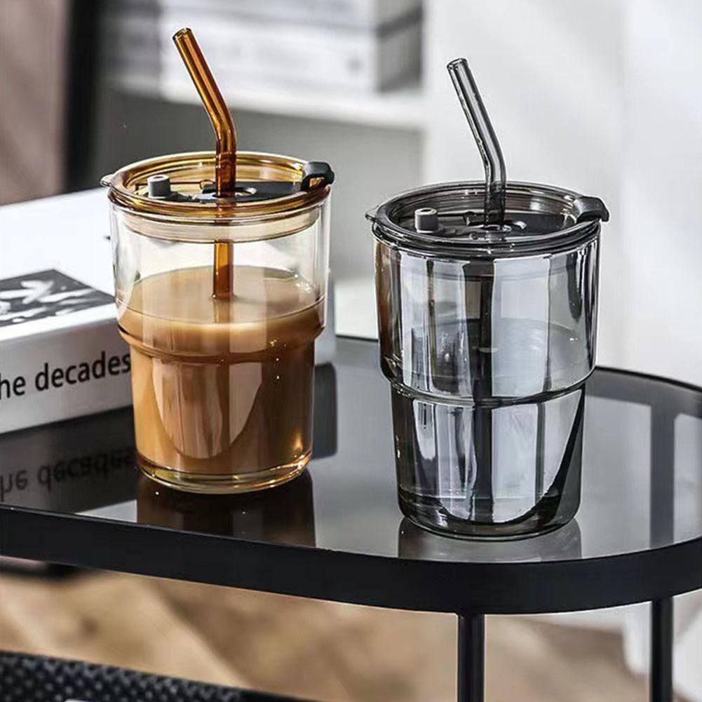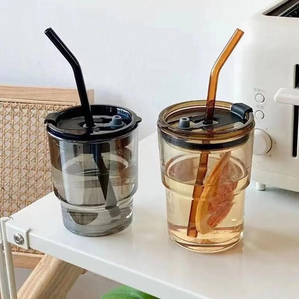 Lid And Straw Transparent Bamboo Cup Milk Coffee Mug Tea Cup Stripe Glass Cup G7