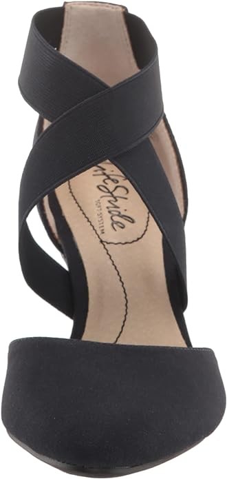 • Fabric or faux leather upper with an almond toe and crisscrossing stretch gore straps for extra flexibility and easy on/off.
