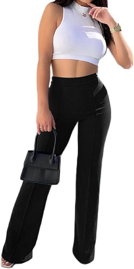 Type---Womens Flare Leg Dress Pants For Work Business Casual, Women's Stretchy High Waisted Wide Leg Pants, Casual Wide Leg Pants High Waist Hip Raise Flare Pants.