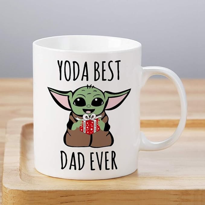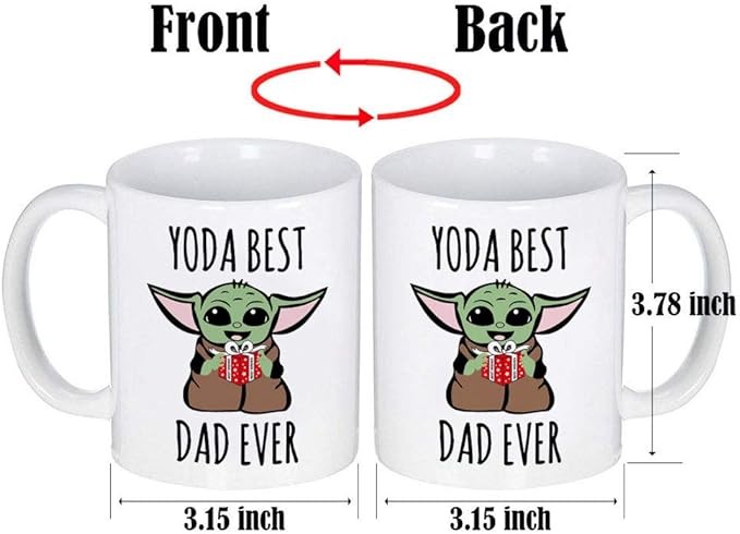 【Cute Design】Baby yoda holds a gift box with sweet words"Yoda Best Dad Ever"printed on both sides, so cute and so sweet, it clearly shows the deep love from daughter, son, wife.