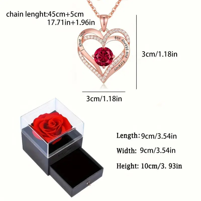 Luxury Red Zircon Pendant Necklaces With Rose Flower Gift Box For Girlfriend Women I Love You Gifts, Romantic Anniversary Party Birthday Wedding Gift Jewelry