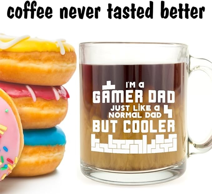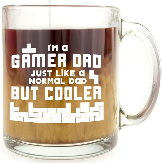 Make Em Laugh I'm a Gamer Dad, Just Like a Normal Dad But Cooler - Gaming Glass Coffee and Tea Mug - Best Cup Gift for Video Game Lover and Father's Day, 13oz White Gift Box Included