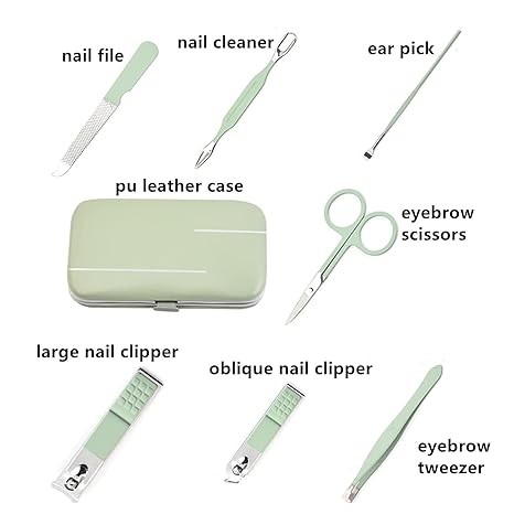 [ Portable&Lightweight ] Size is 11*7*2.5cm and weight is 0.14kg. Easy to Carry and Store. Manicure kit is simply to stash in makeup bag, handbag, car, backpack or pocket. It is very lightweight so you can carry it with you in your bag everyday or pack it with you when you go traveling, without taking up much space, very compact. The design making it your perfect travel partner, offering exceptional foot, hand and facial grooming tools.