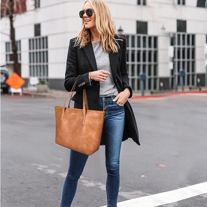 MATERIAL: Crafted from buttery smooth PU leather (light-weight distressed-look) with soft fabric lining. This classic handbag is the effortlessly Tote you'll want to have and rely on for the rest of the time. It's simple yet elegant and spacious enough to carry your laptop or iPad.