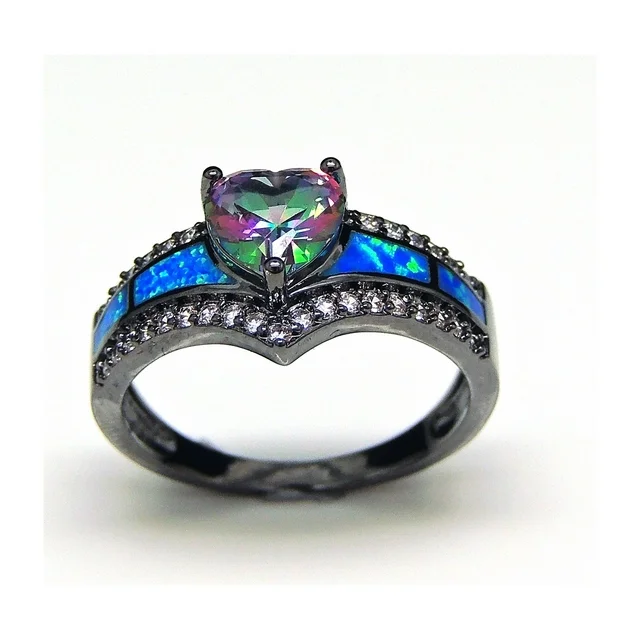 Introducing the elegant Mystic Heart Ring from the Ginger Lyne Collection, a perfect choice for females seeking style and sophistication. This ring, ideal for engagement or special occasions, features a stunning heart-shaped simulated opal in captivating purple, blue, or mystic rainbow colors. The black-plated design adds a unique touch, making it a standout piece. It's a versatile accessory suitable for women of all ages, perfect for moments like engagements, birthdays, anniversaries, or just to show affection. Whether you're shopping for your girlfriend, wife, daughter, or sister, this ring is a thoughtful choice that combines affordability with luxury. Enhance your jewelry collection with the charm and allure of the Mystic Heart Ring, a symbol of love and commitment.