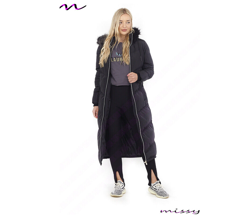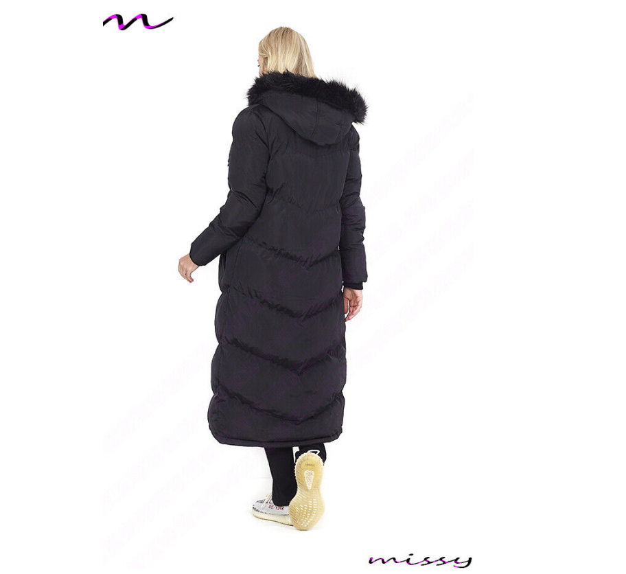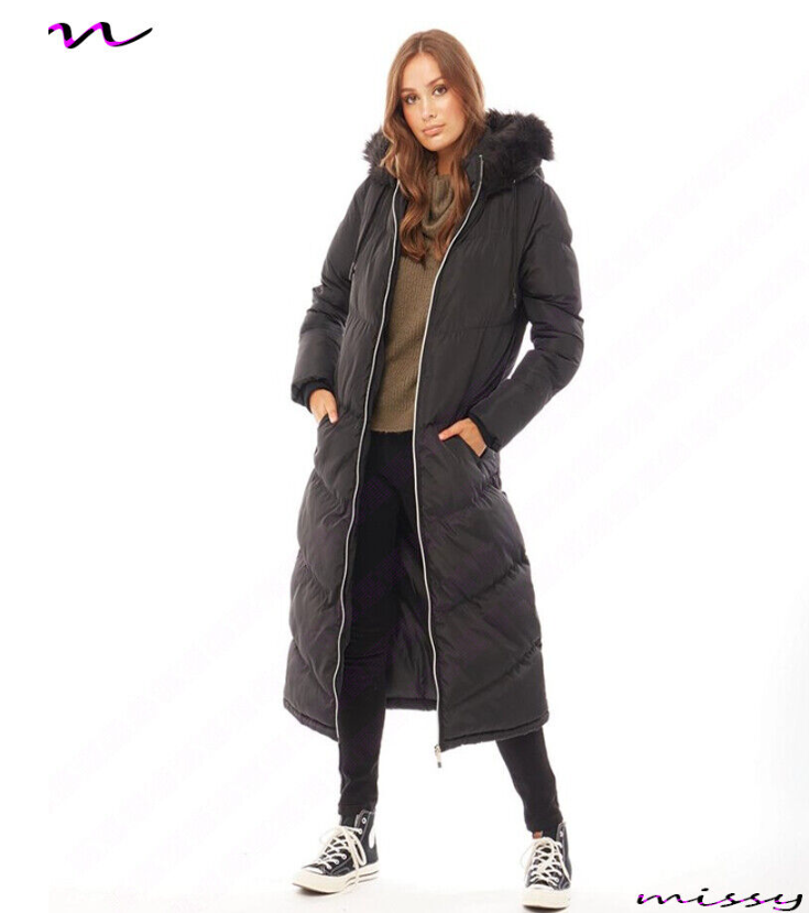 NEW Womens LADIES MAXI LONG PUFFER PARKA Quilted WINTER COAT FUR HOOD LONG