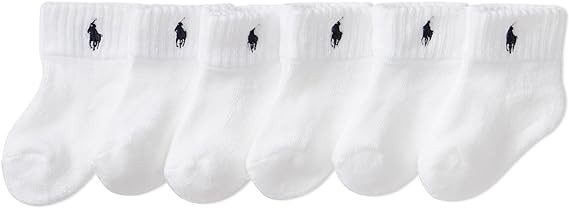 Polo Ralph Lauren Kids’ baby Classic Sport Ankle Socks - 6 Pair Pack - Soft Stretchy Yarn & Stay Up Top