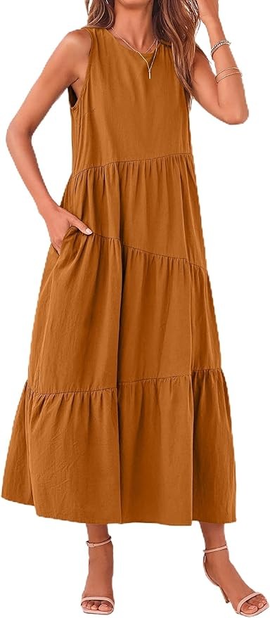 FEATURES: Sleeveless Womens Dresses/ Crewneck Long Dresses For Women/ Sundresses For Women Casual Beach/ Fit And Flare Dress For Women/Vacation Dresses For Women/ Sexy Party Dresses For Women/ Ladies Boho Midi Dresses/ Summer Outfits For Women/ Cotton Tank Dress/ Tiered Dress With Pockets