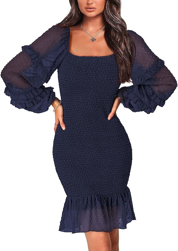 FEATURES: Lantern Sleeve Casual Dresses For Women/Square Neck Dress For Women/Mini Smocked Dress Women/Elegant Mermaid Dress For Women/Long Sleeve Homecoming Dresses/Ruffle Party Dress/Sexy Tight Dress For Women/Cute Ladies Dresses/Fall Fashion Wedding Guest Dresses
