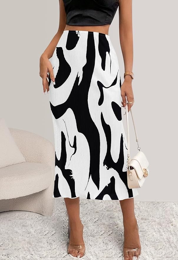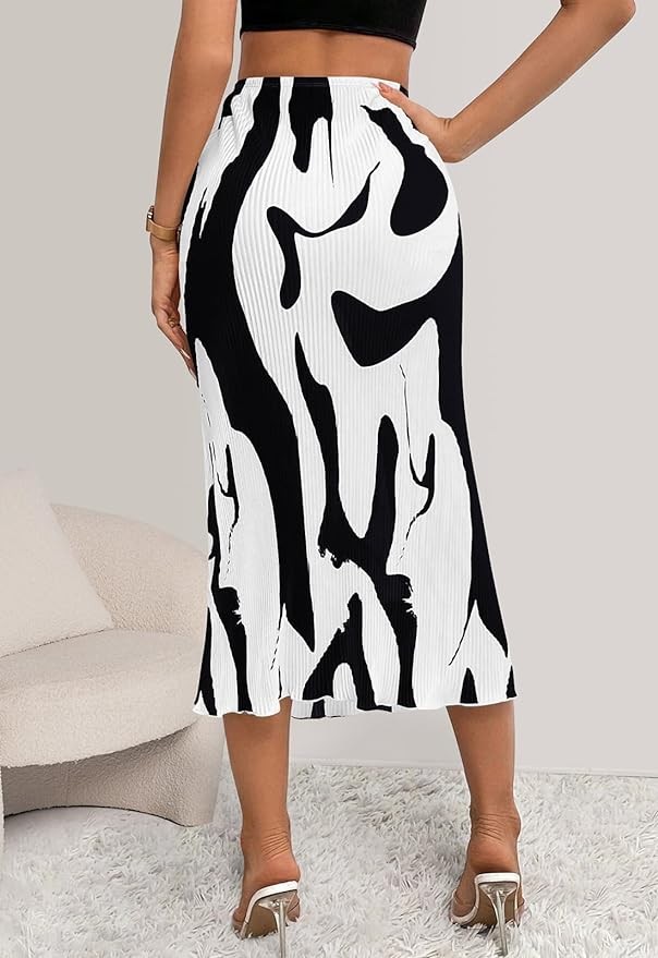 FEATURES: Unique print women's skirts, Classic plisse midi skirt, Elastic waistband, High waisted skirts for women trendy, Ruffle hem long skirt. A versatile womens skirt goes well with any types of top, tube, tank, shirt, blouse, etc.